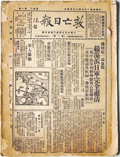 雖然《救亡日報》只在上海出版了不到3個月,卻在上??箲?zhàn)史上留下濃墨重彩的一筆。其創(chuàng)刊后不久,《戰(zhàn)時教育》《救亡周刊》《戰(zhàn)時聯(lián)合旬刊》等陸續(xù)出版。即便時局動蕩,環(huán)境惡化,中國共產黨領導下的出版?zhèn)鞑C構仍千方百計開辟新的抗日宣傳陣地,凝聚人心,共御外敵。