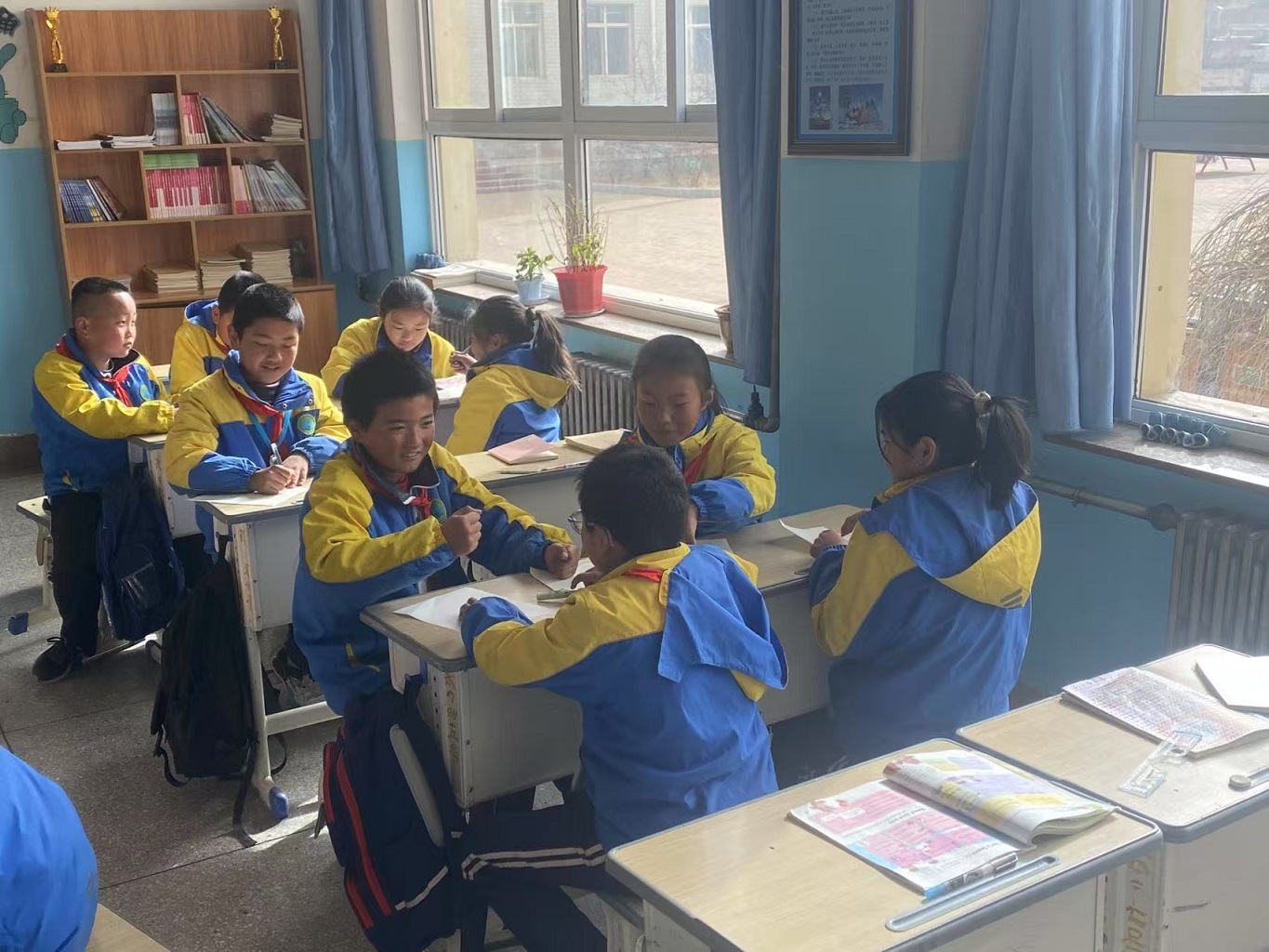 學(xué)校圖書室擁有上萬冊藏書,但左昡還是覺察到書籍在另一層面的“匱乏”——書架上大都是名人傳記、教輔材料,難以吸引孩子,且每學(xué)期僅對每個班級開放一次。2025年寒假期間,左昡聯(lián)系了春風(fēng)文藝出版社、接力出版社和新蕾出版社,再加上她所在的作家出版社,成功為學(xué)校募集到近600本真正優(yōu)秀的兒童文學(xué)圖書。新學(xué)期伊始,這些書在左昡抵達之前,抵達了學(xué)校。等她開始新學(xué)期的課程時,她欣喜地發(fā)現(xiàn),孩子們的課桌上,已經(jīng)放上了從圖書室里借來的新書。每個孩子的課桌上都有一本。