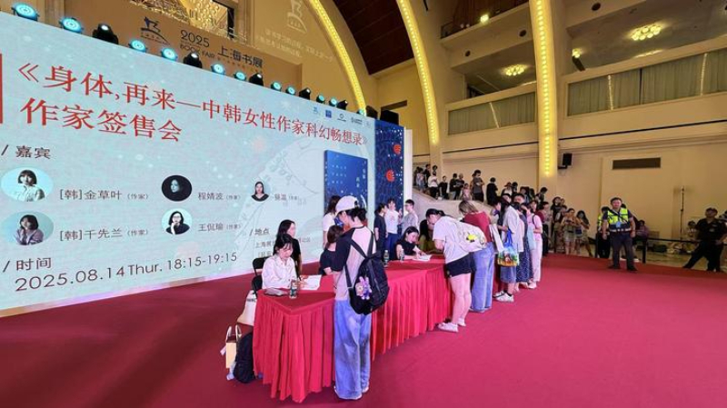 8月14日,中韓女性科幻作家現(xiàn)場(chǎng)簽售會(huì)在2025上海書(shū)展中心活動(dòng)區(qū)舉辦。(受訪機(jī)構(gòu)供圖)