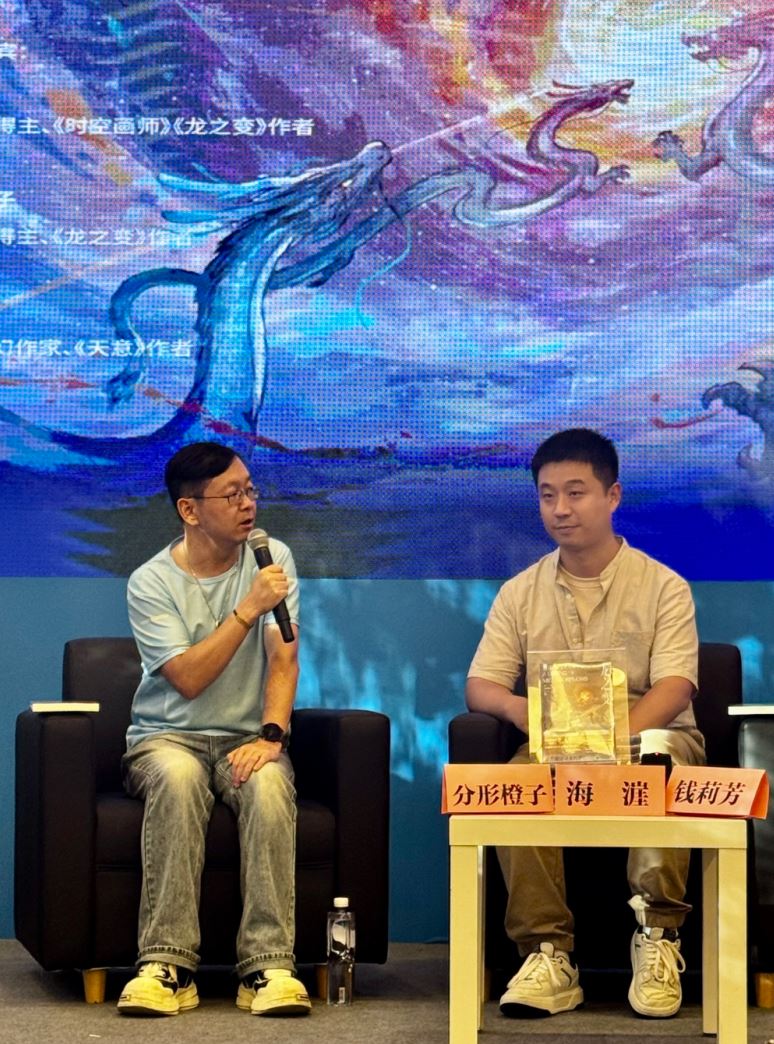 海漄和分形橙子在2025年上海書(shū)展發(fā)布新書(shū)《龍之變》。