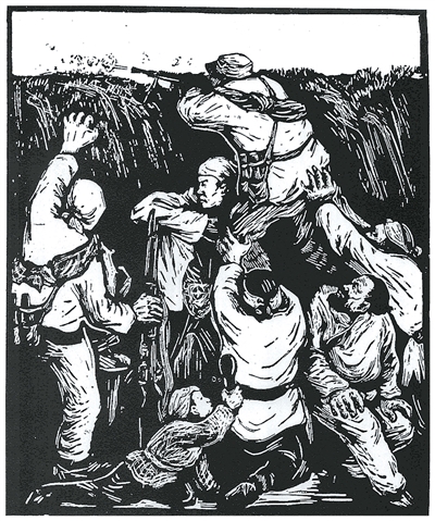 當(dāng)敵人搜山的時候(黑白木刻)彥 涵作