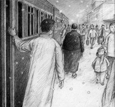 意大利插畫師克拉迪奧為《背影》所作的插畫。資料圖片