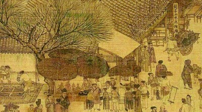 ??從《清明上河圖》上可以清晰地看到,商人比比皆是,商品琳瑯滿目。汴河兩岸店鋪林立,街道上游人如織。穿過城門進(jìn)入內(nèi)城,更是一派熱鬧繁華光景。