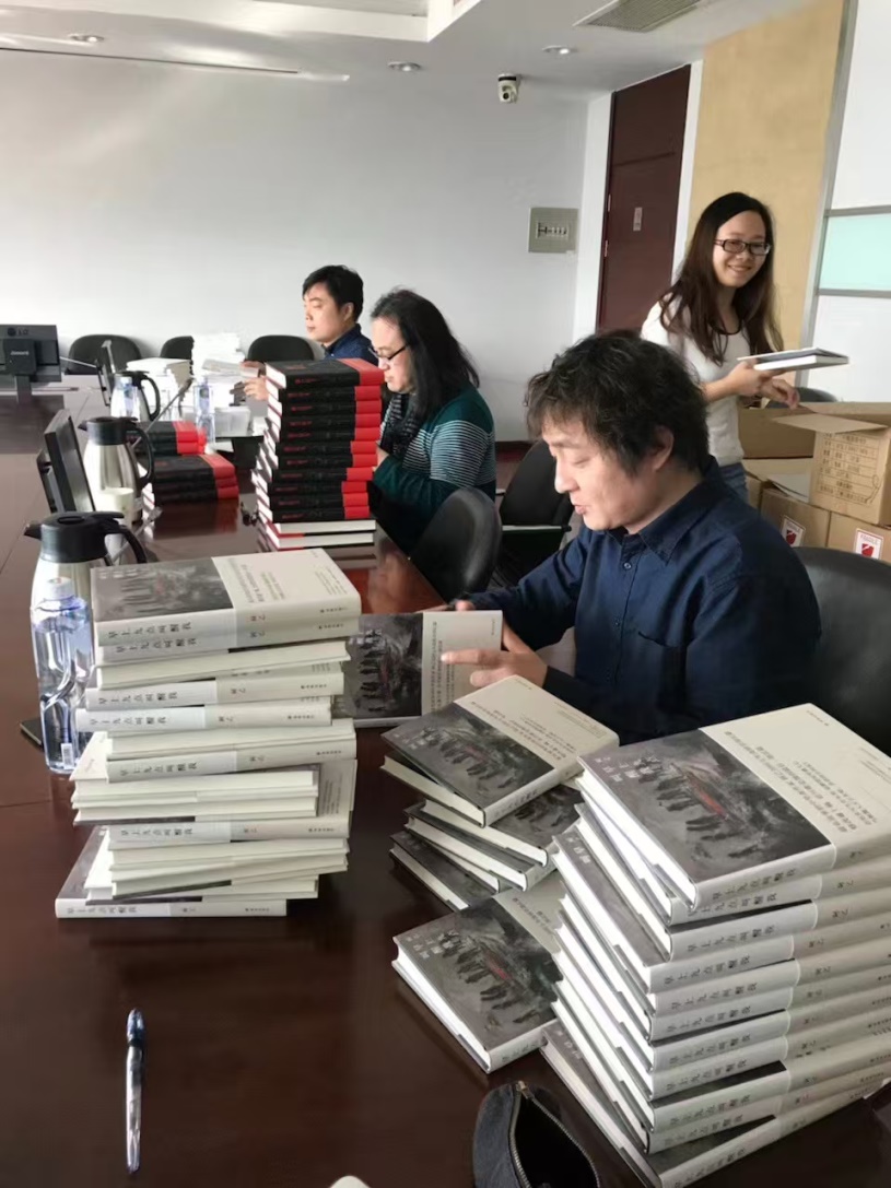 2018年春,余澤民攜譯著《撒旦探戈》《燭燼》與作家魯敏在先鋒書店做分享活動。左起第四個:余澤民,第五個:本文作者徐瓊玉,最后一位:《撒旦探戈》責(zé)任編輯王玨