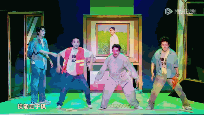 這有點像先鋒派藝術常用的“拼接”。不難發(fā)現(xiàn),技能五子棋學校在言說之時,非常喜歡將自己的話語直接聯(lián)系到小品之外、現(xiàn)實世界的某個元素中。譬如,在解釋何為飛沙走石時,張興朝大吼一聲“問得好”,隨后說道:“所謂飛沙走石,就是將對方的棋子,直接扔進……什剎海!”在此,“什剎?!背尸F(xiàn)為現(xiàn)實世界的一個碎片,其并沒有任何出現(xiàn)的理由,僅僅是被并置在飛沙走石技能一側(cè)。與之相關的還有,張興朝假扮保潔,用掃帚擺了一下張呈的褲子,后者抱怨“別弄,我這是新褲子”,前者立刻接話:“你你你,你要跳舞嗎?”張呈使出“力拔山兮”后,對方立刻發(fā)動一招“兩級反轉(zhuǎn)”,結果搬出的是張呈抖音賬號中的一張經(jīng)典(黑歷史)照片。被王廣擊敗后,張興朝躺在地上裝死,還不忘加上一句“APT, APT”。甚至有一些笑點,雖然沒有直接對現(xiàn)實進行照相術般的復刻,但其中也能夠看出現(xiàn)實碎片。比如,張興朝對張呈怒吼“如果你下棋就是為了贏的話,那你和那些下棋的有什么區(qū)別!”又或者“你這個畜生”。這些話語確實并沒有直接調(diào)用現(xiàn)實素材,但它調(diào)用了現(xiàn)實中的某種邏輯,并將其從其原生語境中暴力撕扯下來,使其成為一個個孤立的、懸置的片段。這些現(xiàn)實碎片被無中介地和言語的行進主題并置,才是更為主流的笑點。