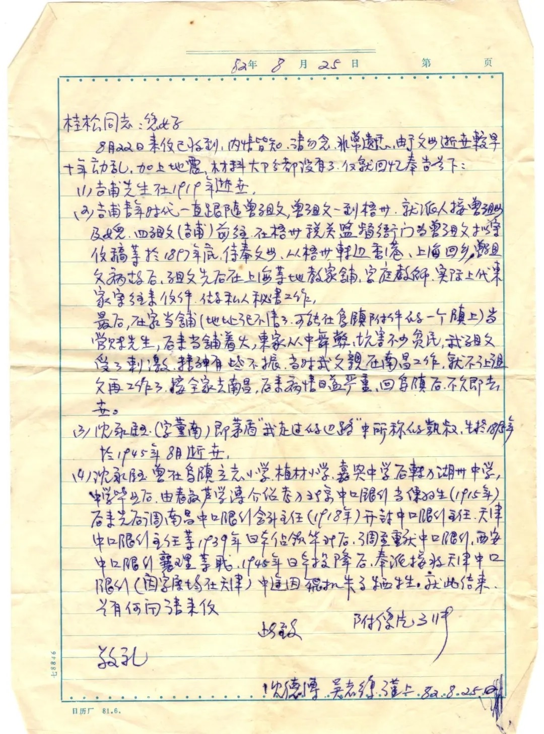 沈德溥、吳志復1982年致筆者信