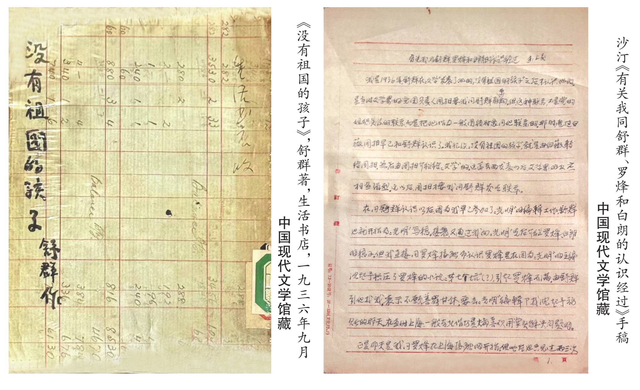 “我是1936年,舒群在《文學》發(fā)表了他的《沒有祖國的孩子》認識他的……那時,通過白薇,周揚早已和舒群認識了,我記得《沒有祖國的孩子》就是由白薇轉給周揚,然后由周揚介紹給《文學》的。這篇東西發(fā)表以后,文學界反映相當強烈?!痹谥袊F代文學館“山河跡憶——手稿里的抗戰(zhàn)中國”展覽中,展出了作家沙汀的手稿,真實地記錄了舒群和筆下的果里走上文壇的過程。