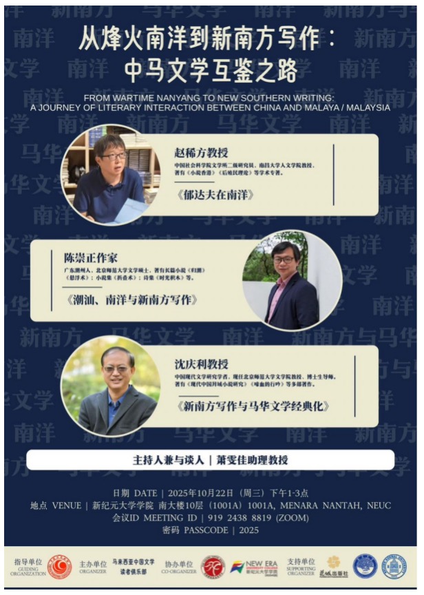 近日,由中國(guó)作家協(xié)會(huì)外聯(lián)部指導(dǎo),馬來(lái)西亞中國(guó)文學(xué)讀者俱樂(lè)部主辦,馬來(lái)西亞漢文化中心、南方大學(xué)學(xué)院與新紀(jì)元大學(xué)學(xué)院共同承辦的“新南方、新南洋”文學(xué)思潮海外推廣系列活動(dòng)在馬來(lái)西亞舉辦,中國(guó)作家陳崇正、學(xué)者趙稀方和沈慶利赴馬與馬來(lái)西亞文學(xué)界人士充分交流,開(kāi)展了一系列充滿思想深度的對(duì)話。